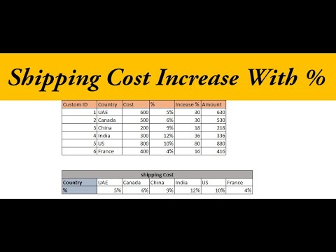 Calculate Shipping Cost Increase With Percent (%) In Excel